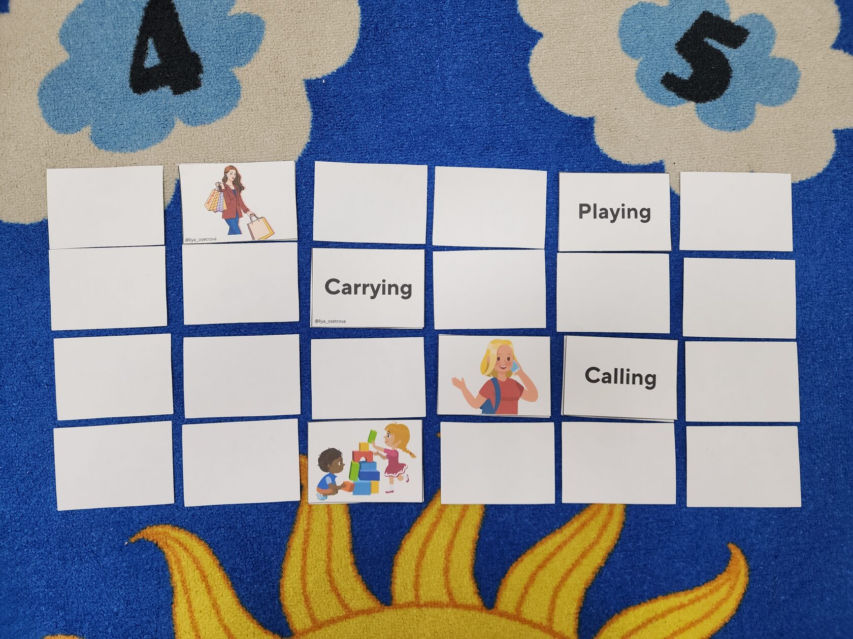5️⃣ Memory. Одна из самых любимых игр детей. Мы раскладываем карточки рубашкой вверх, и нужно найти пары одинаковых карточек либо пары картинка-слово. Каждый игрок может открыть любые две карточки, при этом обязательно называет слова на карточках. Если это пары, то он может оставить карточки себе. Тот, кто соберет больше пар карточек, выигрывает.
